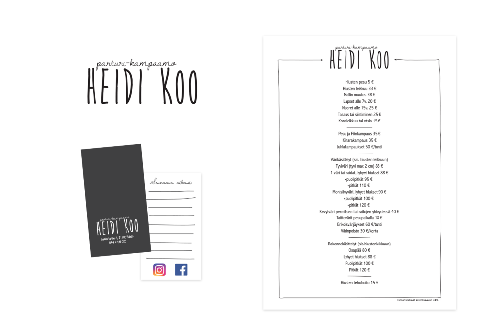 Kampaamoyrityksen ilmeen suunnittelu asiakkaan toiveiden mukaan.