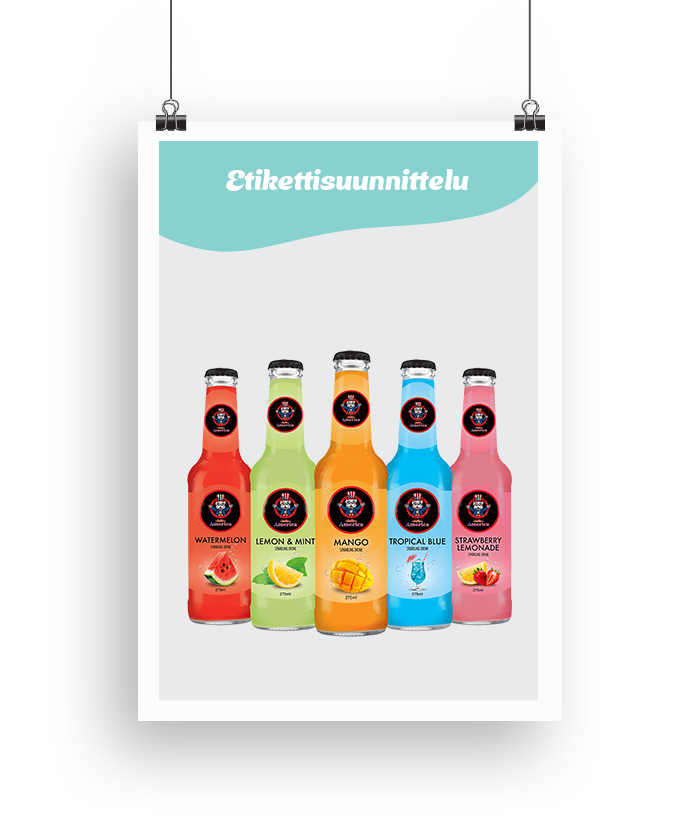 Etikettien suunnittelu asiakkaan toiveiden mukaan.